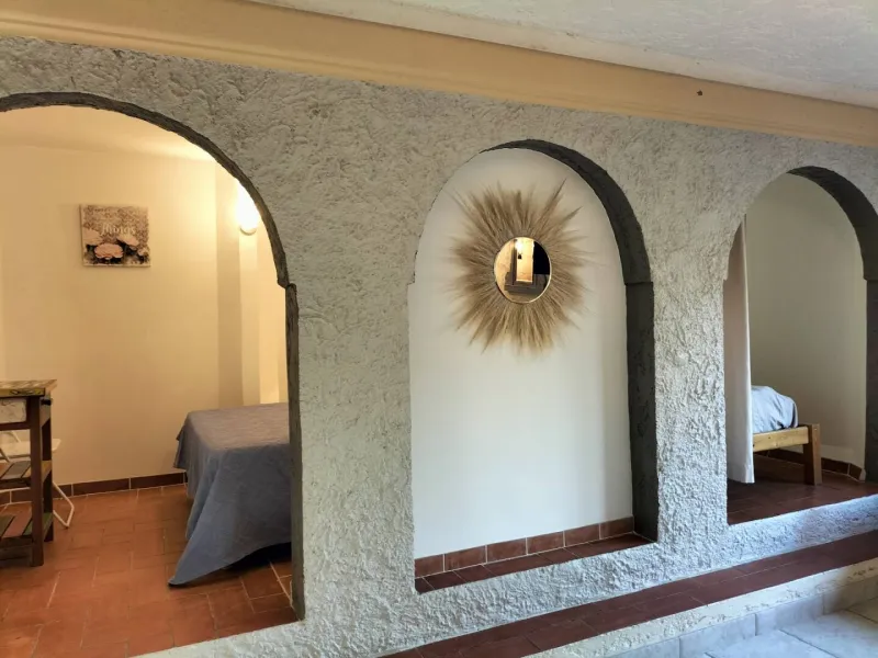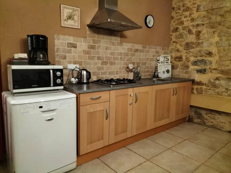 The Romarin gîte consists of a bedroom with a 140‑cm bed, an alcove with a 90‑cm bed, and another alcove with a 140‑cm bed, as well as an equipped kitchen opening onto a living room furnished with a 140‑cm sofa bed. There is also a bathroom with a washbasin, a shower, and separate toilets.The terrace is private and furnished with a table, chairs, and a barbecue.