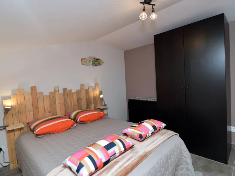 *a mezzanine bedroom with a 140 cm*190 cm double bed and a storage cupboard.
