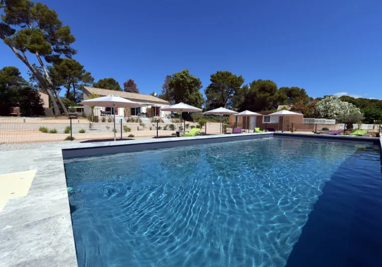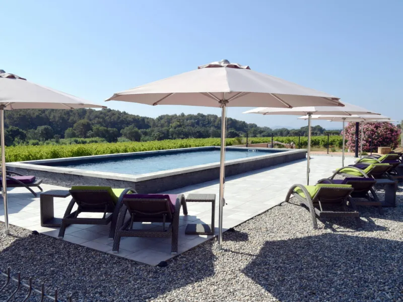 The swimming pool is designed for your comfort and relaxation, with quality deckchairs with mattresses and small consoles, as well as 3-metre parasols.