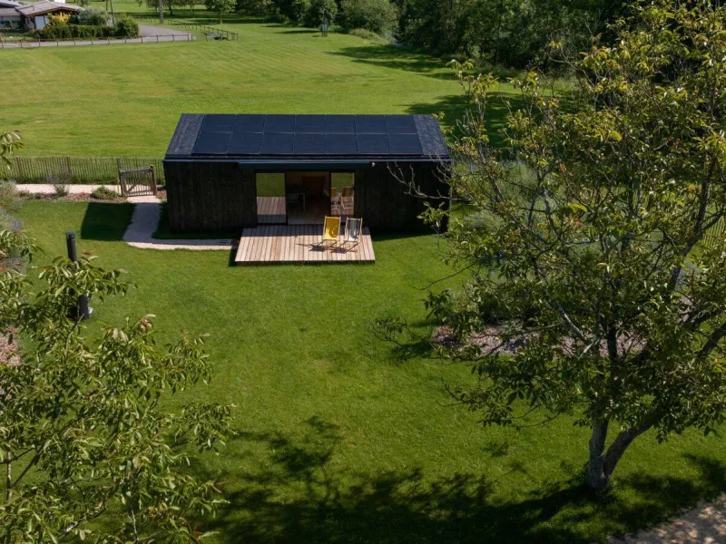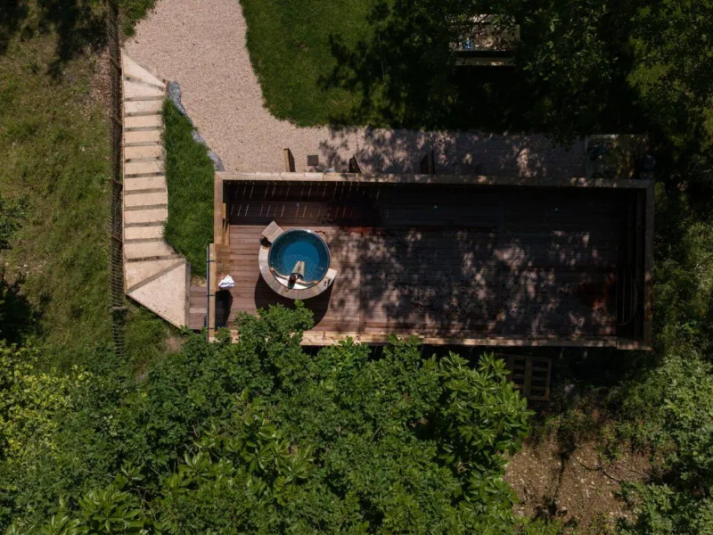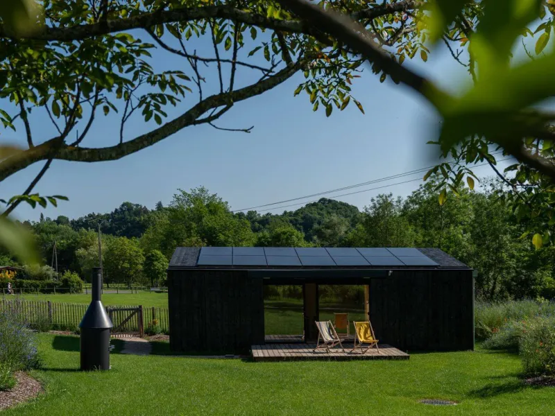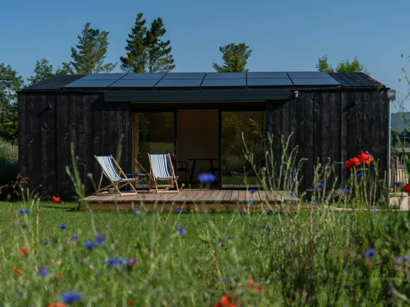Surrounded by meadows, hills and peaks, our four K-banes (tiny houses) are located just a stone's throw from the river on the edge of Arette, a small village in the Haut-Béarn region nestled in the Barétous valley, on the edge of the Basque Country and in the heart of the Atlantic Pyrenees (64). Here, the mountains are grandiose and gentle, the lights are beautiful and the seasons are flamboyant. The elegant architecture and the pure lines of our K-bane fit soberly into a beautiful and generous nature. The deep black cladding made of burnt wood makes it a sober and precious object. This natural technique called Shou-sugi-ban (or Yakisugi), which consists of burning the surface of the wood, originates from Japan. A laundry room with washing machine and dryer is available, as well as a bicycle room. There is also a Nordic bath in the open air.Localisation