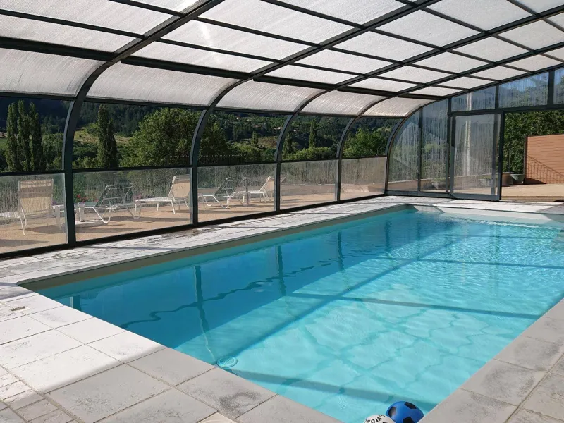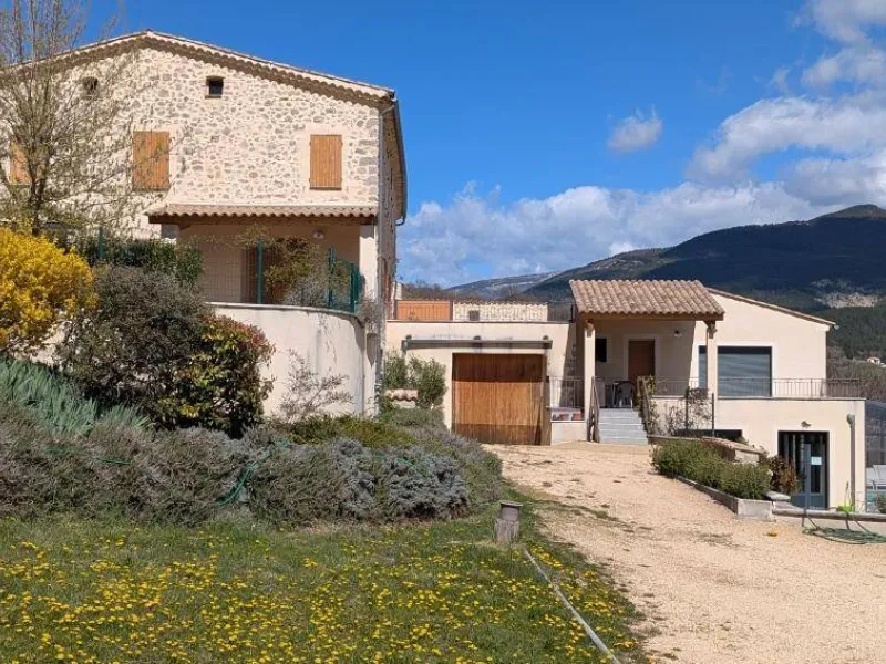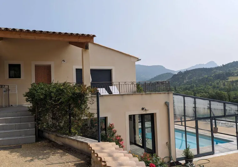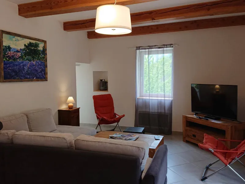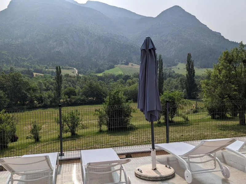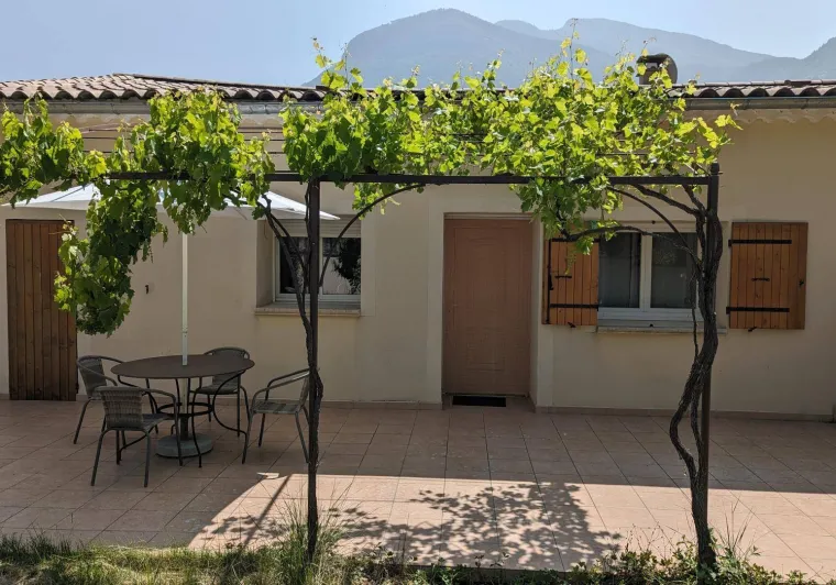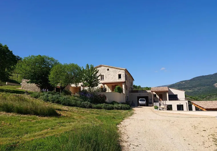 There are 5 Gîtes d'Adrien (2 to 8 people) on 19th century family farm with view of Les Aiguilles mountain, the Mont Rond and the Rocher du Caire, all ideal for walking/hiking and observing vultures and birds of prey. At end of day, relax and get together around the shared indoor swimming pool (8x4.5m, 1.30m deep), heated April to October. All the gîtes are comfortably equipped. Shops/services in village: minimarket with petrol station, chemist's, Post office, free shows. Cornillon lake (swimming, fishing) 5km. Near Rémuzat: towns of Nyons and Vaison-la-Romaine (summer markets), château of Grignan (famous as the residence of Madame de Sévigné).Single level gîte adjoining another. Kitchen area opening onto living room and lounge area, 3 bedrooms (queen-size bed) (queen-size bed) (2 single beds), shower room, separate WC. Terrace (40 sq.m.).