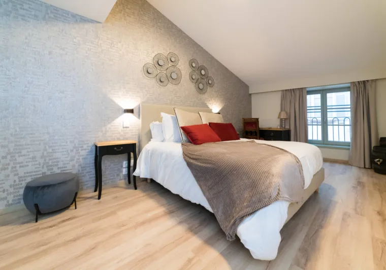 A cellar atmosphere in pastel and burgundy shades, reminiscent of stone and the velvety texture of wine. You're sure to appreciate some of the authentic decorative features that will make you want to go wine tasting and discover the cellars of the Mâconnais and Beaujolais regions!