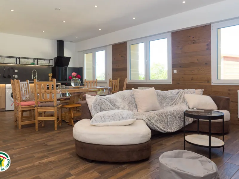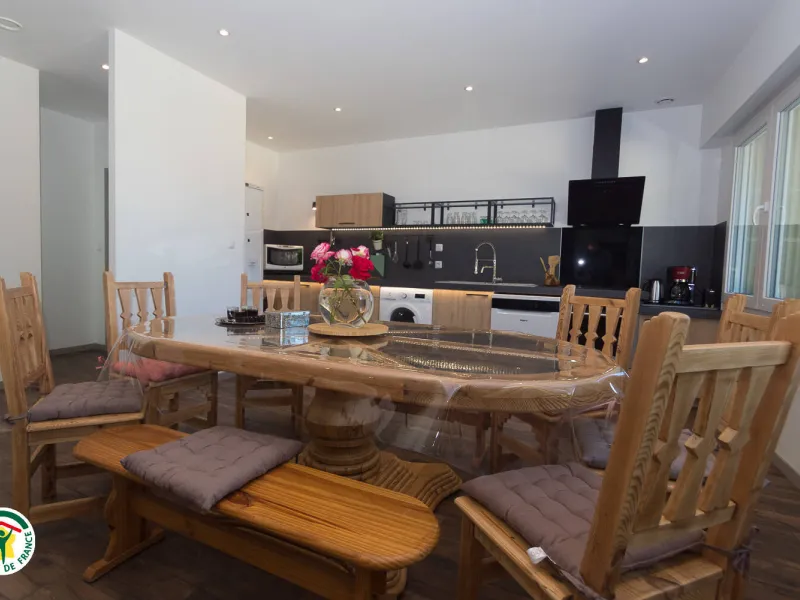 Vous disposerez sur un même niveau d'un vaste séjour-cuisine et son coin salon.Toutes nos chambres ont une salle d'eau et un wc privatif dont 2 chambres avec 2 lits 1 pers, 3 chambres avec 1 lit 2 pers et 1 lit 1 pers.