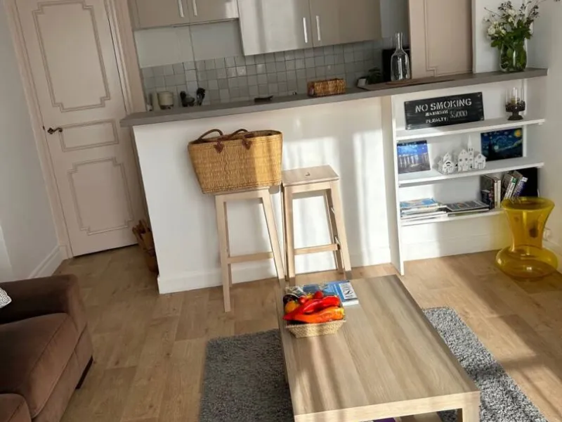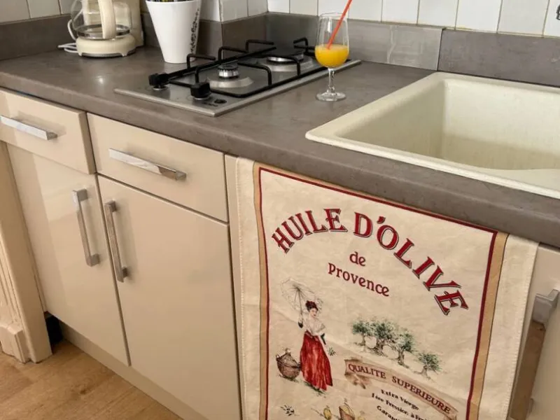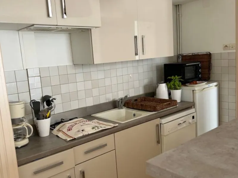 Ideally located in the historic center of Arles at the foot of the shopping streets, 500 m from the Rhone river and the train station, with free parking less than 5 minutes away.For 2 people, on the 2nd floor, without elevator, in a small residence, the apartment is equipped with central heating with gas boiler and reversible air conditioning. It comprises a kitchen opening onto the living room with bar and...