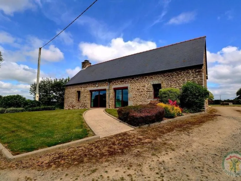 Single-storey gite, suitable for disabled people. GR.FL: Living room with lounge area (sofa bed). Fitted kitchen. Utility room. Bedroom 1: twin beds. Bedroom 2: double bed. Shower room. WC. Oil-fired underfloor heating. A stone-built house in a quiet, leafy setting close to footpaths and the Parc Floral du Chatellier. It has a lawn with patio, barbecue and garden furniture. Village 3km. Fougères 13km.Localisation