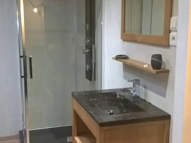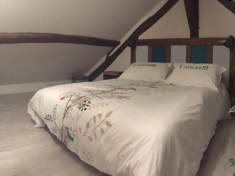 L'Atelier is a house with a modern decor and "home staging". Rent for one or more nights this large living room, bright thanks to the bay window, with the bedroom on the mezzanine, the bathroom and the sauna is at your disposal for a quiet and relaxing stay.Localisation