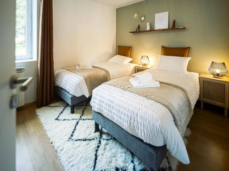 Located between Moulins, city of art and history and Vichy, queen of spa towns, you will easily explore the department. Ground floor: kitchen open to the living room, bathroom with walk-in shower and bathtub, separate toilet, 3 bedrooms for 2 people.