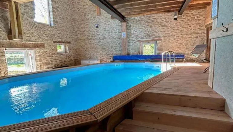 High-capacity gite (sleeps 17) with year-round heated indoor pool and Nordic bath.