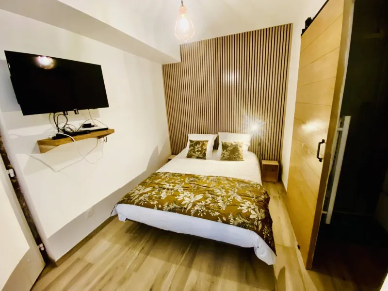 La partie nuit (située dans la même pièce) est constituée d'un lit de 140X190, avec un matelas haut de gamme à mémoire de forme.
