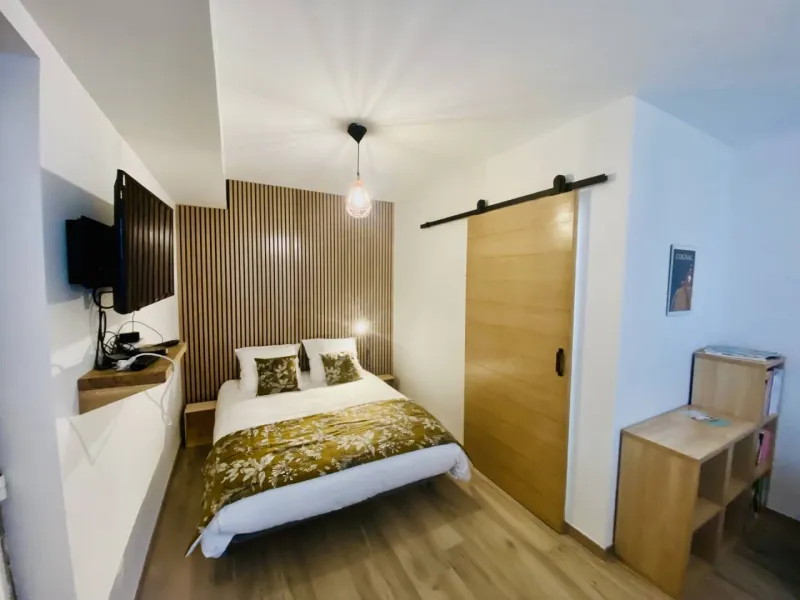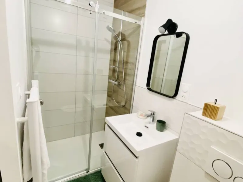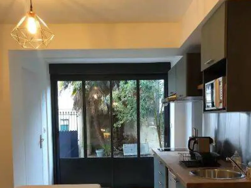 Rénové en 2023, notre studio est composé d'une pièce avec kitchenette ouverte, donnant sur le jardin, et d'une salle de bain avec grande douche, lavabo et toilette. Précision: le studio est indépendant, mais situé au rez-de-chaussée de notre maison. Nous vivons dans les 4 étages supérieurs.L'entrée indépendante se fait par notre jardin. Une grande baie vitrée de type atelier industriel offre de la luminosité au studio.