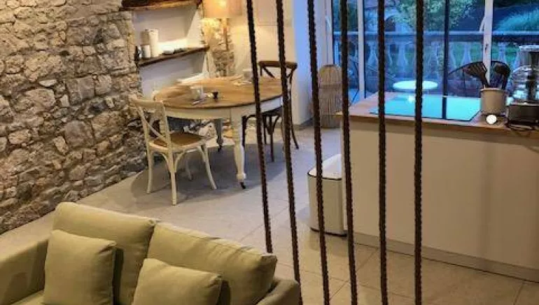 This duplex gîte has a kitchen opening onto the living room, a sitting room with a large-screen TV and, upstairs, a large double bedroom with an uninterrupted view of the Grand Colombier.
