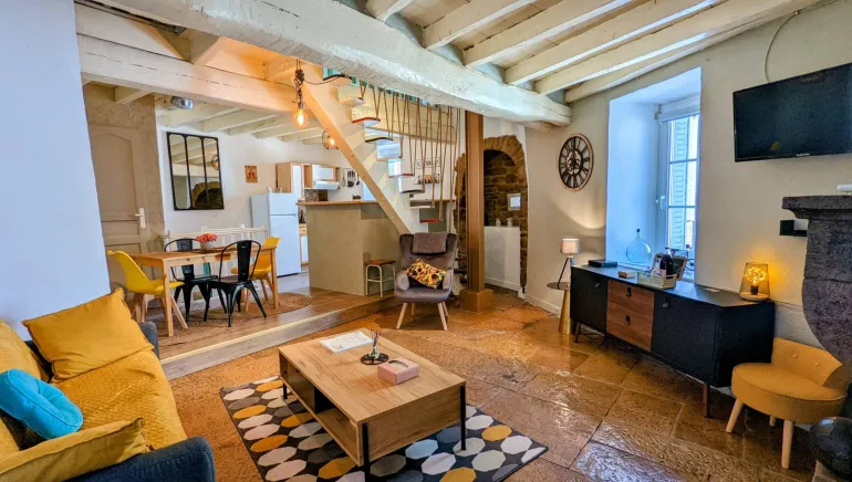 15 minutes from Dijon, in a village on the banks of the Burgundy Canal, with all amenities, this pretty atypical house comprises: on the ground floor (raised ceiling): living room (sofa bed offering 2 extra beds), with TV, Bluetooth speaker, opening onto dining room and fitted kitchen. Lower floor: bathroom with bath and WC. Zen area with infra-red sauna, relaxation lounge with herbal tea room. 1st floor: 1 bedroom with 1 x 160 cm bed and 1 bedroom with 2 x 90 cm beds. Reversible air conditioning. Parking space. Small terrace with garden furniture, barbecue and parasol.