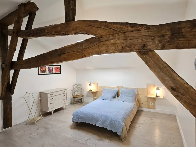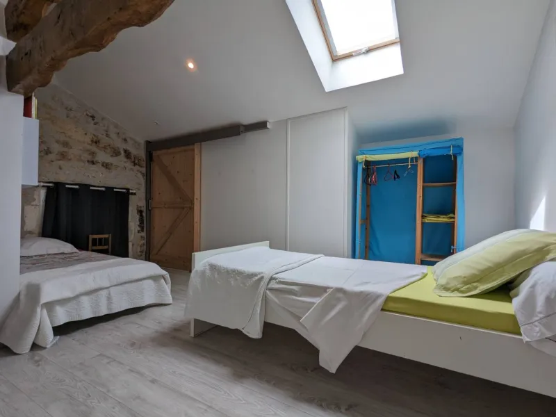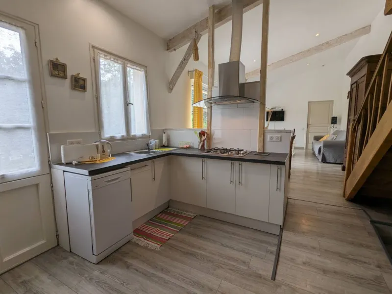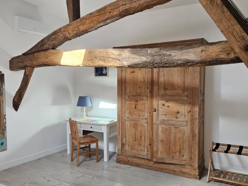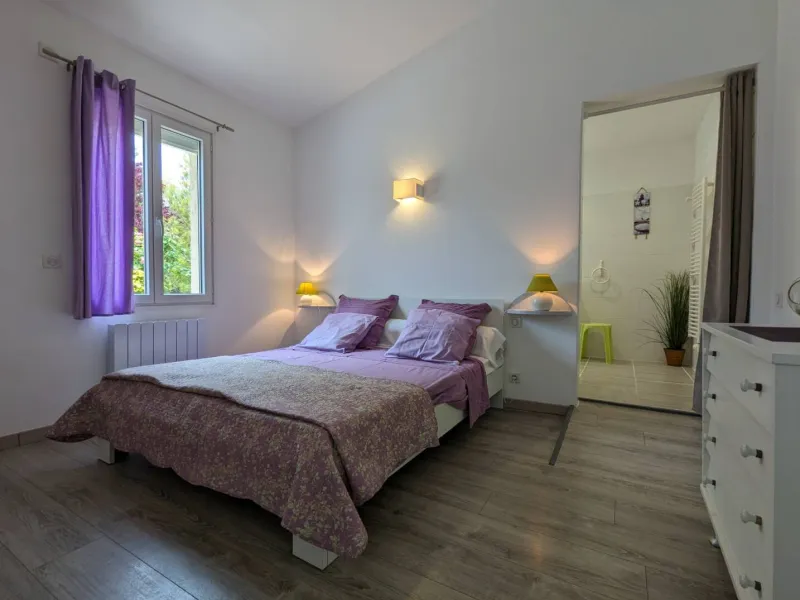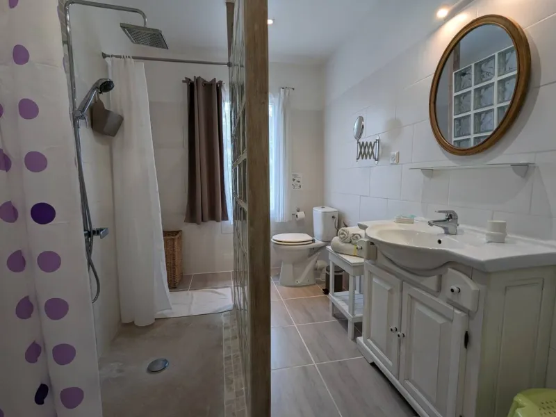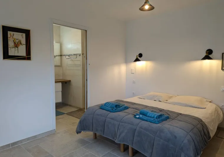 “Bel” is 85m² and can accommodate up to 6 people: air-conditioned cottage with a fully equipped kitchen, dishwasher, bright living room, flat-screen TV, lounge, and three bedrooms. One bedroom on the ground floor with a 160/200 cm bed, en-suite shower room and toilet, and one bedroom upstairs: a dual-aspect room with two 90/200 cm beds and a spacious master bedroom with a 140 cm bed. A shower room and separate toilet complete the upstairs accommodation.Pool towels are not included in the linen (available on request).