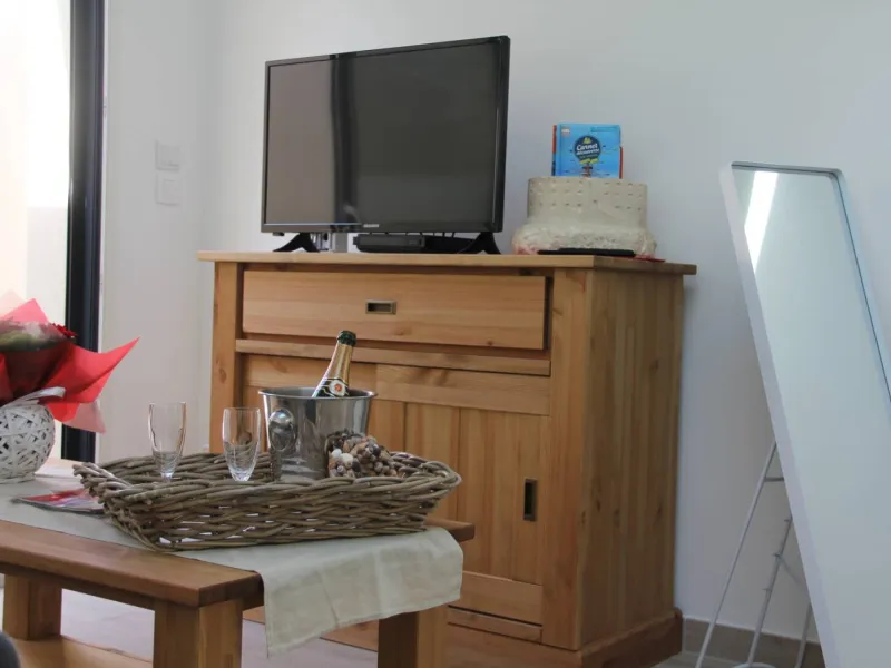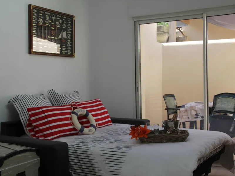 The ground-floor bedroom, with its top-of-the-range sofa bed, will give you peace and quiet and a good night's sleep.