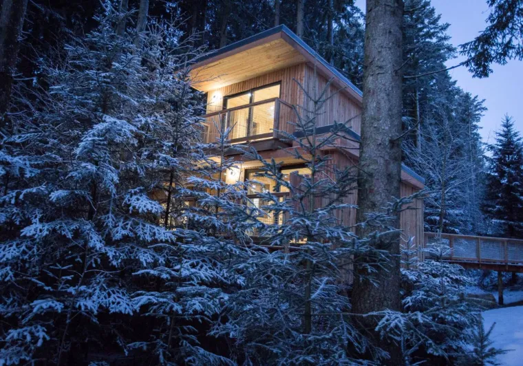 The Domaine de l'Authentique welcomes you to its new perched cabins. Whether you're a couple or a group of friends, enjoy a stay in charming cabins overlooking the Chasseral mountain range in Switzerland.Localisation
