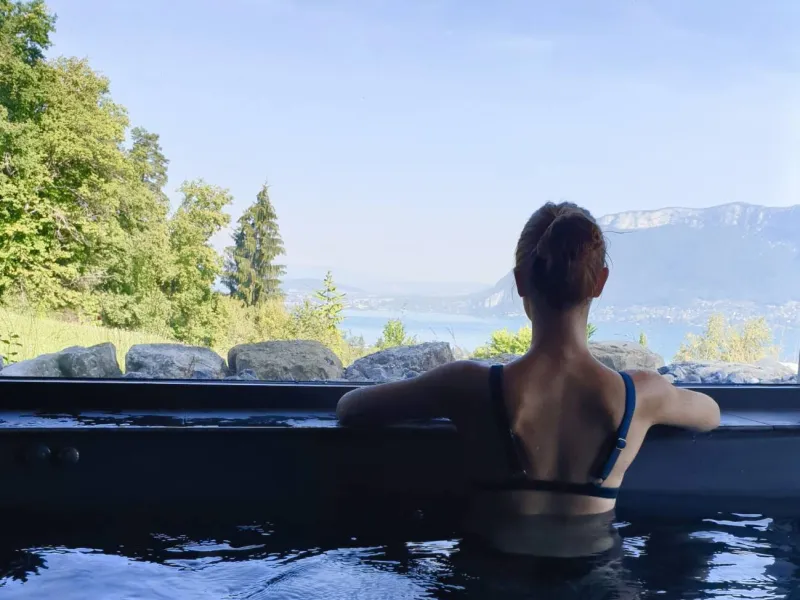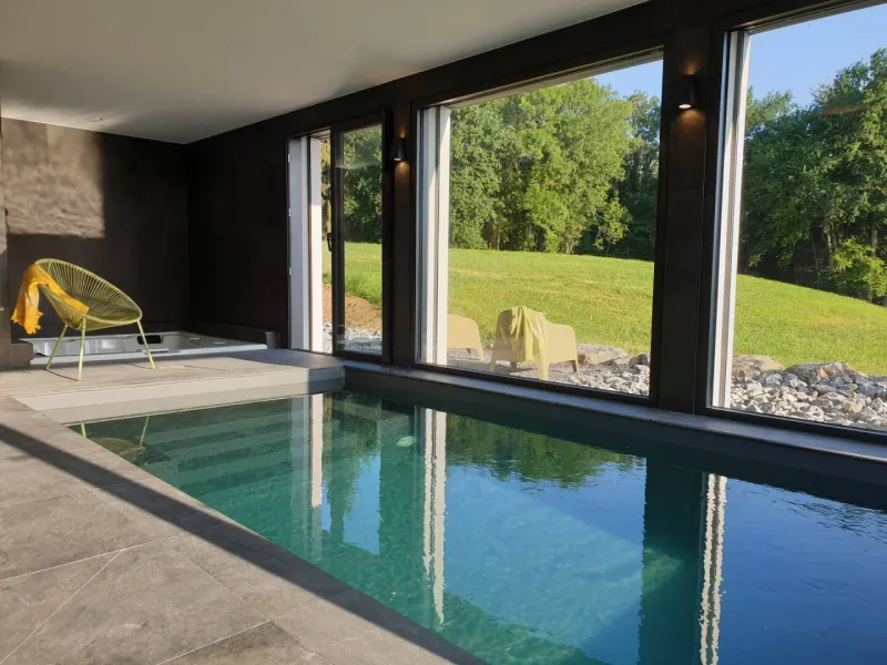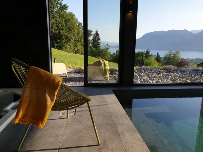 Immerse yourself in the softness of our jacuzzi or relax in the indoor pool, both offering a breathtaking view of the lake. A serene interlude, where time stands still and every moment is an invitation to relax.