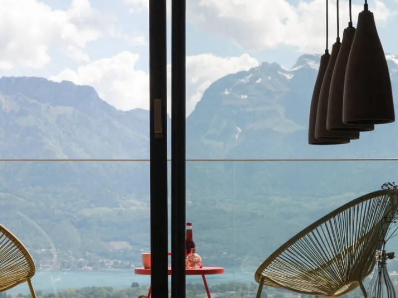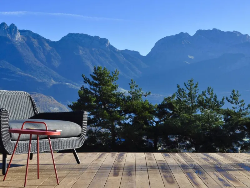 Start your day with breakfast on the spacious, sunny balcony overlooking the blue expanse of the lake. In the evening, marvel at the magnificent sunsets that set the surrounding peaks ablaze, while in the distance, the Château de Menthon-Saint-Bernard and the Alps loom large on the horizon.
