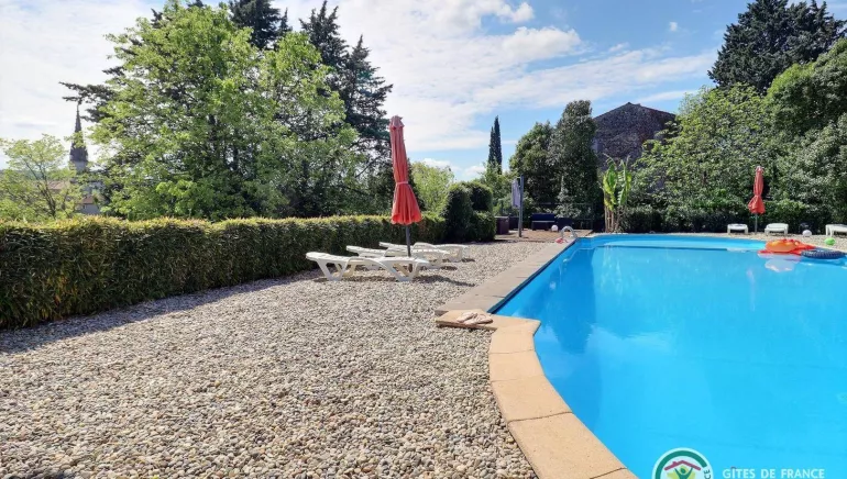 Il s'agit d'un vaste studio de 40 m² en rez de chaussée éclairé par une porte baie ouvrant sur la terrasse, pièce voûtée très fraîche en été comprenant : kitchenette avec gazinière 4 feux, réfrigérateur table top, évier, pièce à vivre, TV, partie salon avec canapé (possibilité pour couchage supplémentaire), une alcôve fermée avec un lit en 140, et salle d'eau avec douche et WC. Cour privative, barbecue, chaises détente, terrasse couverte, salon de jardin et salon de détente. La grande piscine partagée, parfaitement clôturée et sécurisée, dont les dimensions de 18 m de long et de 6 m de large avec une fosse à plonger de 2,50 m et un bassin pour enfants en font un atout majeur compte tenu de la capacité totale de nos gîtes. Elle est ouverte de début juin à fin septembre. Parking clos et commun. Terrain de pétanque et autres loisirs sur place (baby-foot) à partager avec les autres gîtes sur place.