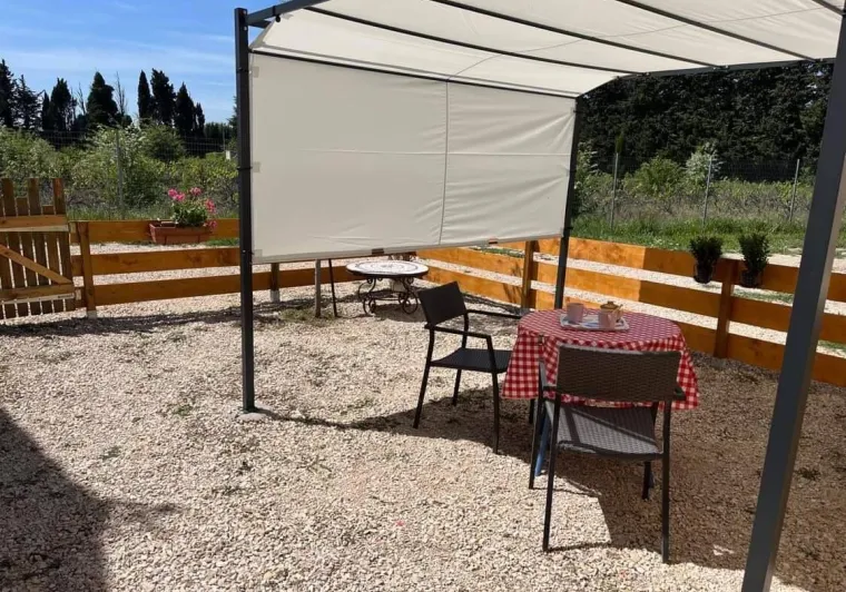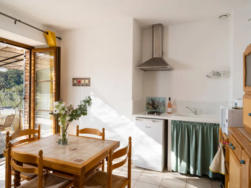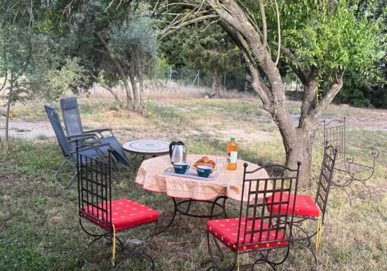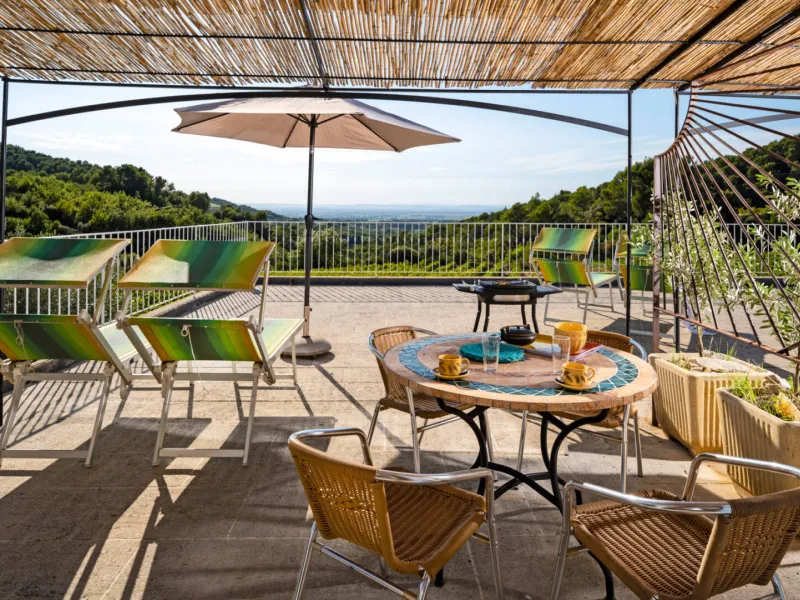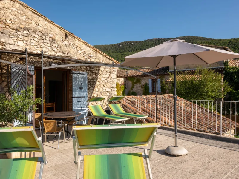 Surrounded by the prestigious Gigondas vineyards, close to the mountains, with panoramic views all the way to the Cévennes, Mas de Lencieu is an exceptional, calm and rejuvenating place.The west-facing apartment has a large terrace with a magnificent view over the vineyards and the Rhône Valley. A small olive hedge borders the access to the gîte. Private parking is available close to the Mas. A gently sloping ramp leads up to the gîte.