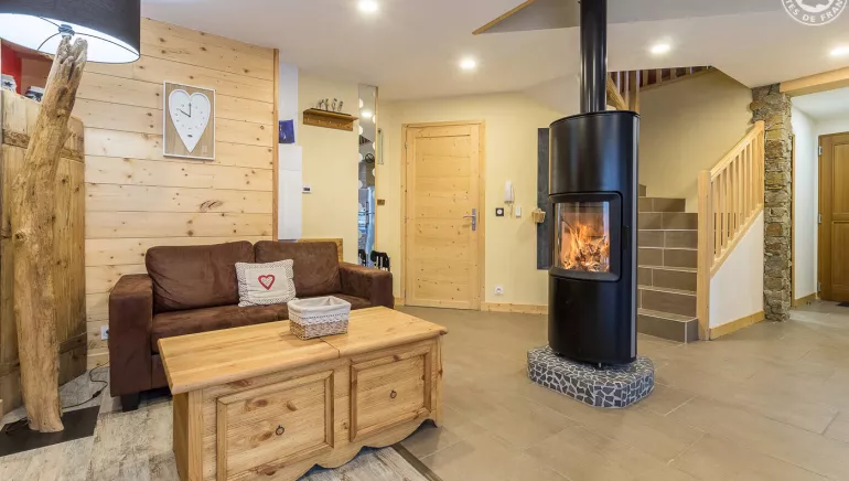 Lodging located in one House with 1 other cottage 6 people. Common entrance. Ground floor: living room-kitchen with fireplace (wood included), 1 room for 2 people (1 bed 160x200cm). Bathroom (shower + Toilet) accessible to people with reduced mobility. Floor: 2 rooms (4 beds 1 person bunk / 1 bed 2 people). Independent water (integrated wc) + WC room. Private terrace with view on the Valley. Washer and dryer located in a common laundry room. Local electric private skis + shoes dry. Bicycle storage. Linen included + beds made. End of stay housework option.