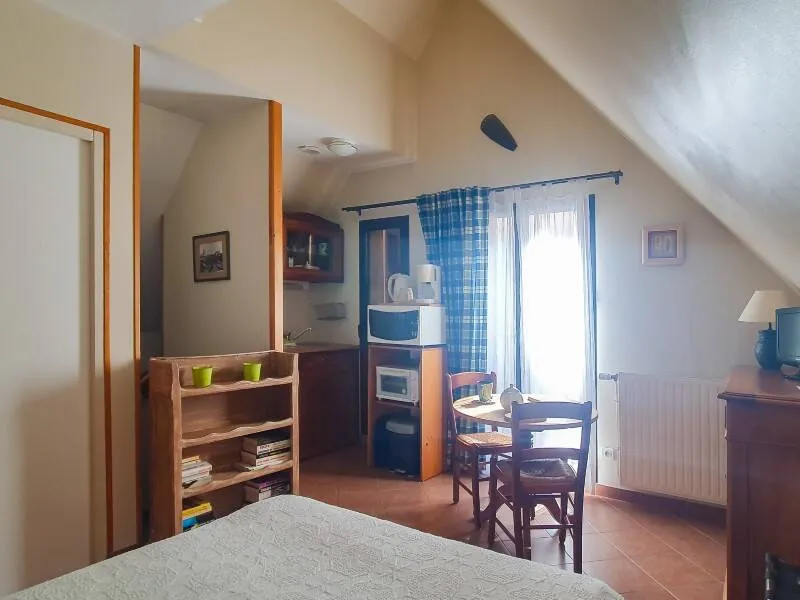Non-smoking fully fitted studio of 20 m² on the first floor. Double sofa-bed and TV. Kitchenette with microwave. Shower room/WC. Central heating included and sheets supplied. Locked garage. WIFI internet access. Animals not admitted.Localisation