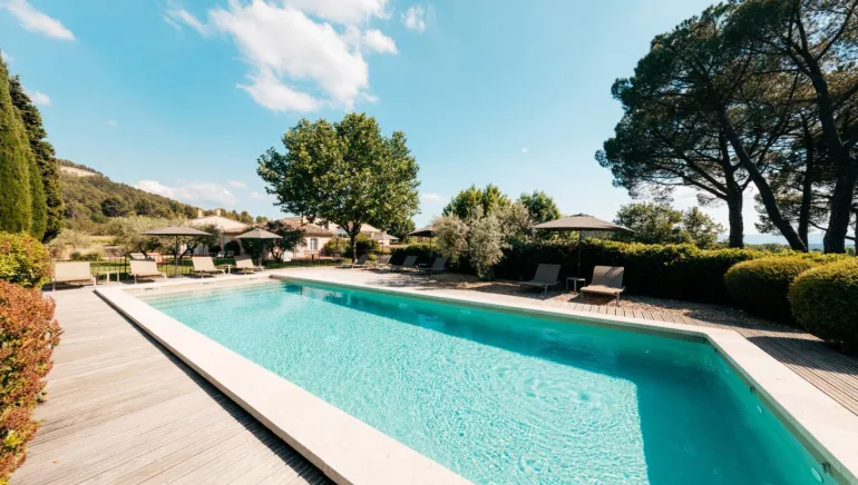 Il bénéficie d’un panorama à couper le souffle qui embrasse les ocres de Roussillon, Gordes et les contreforts du Ventoux.