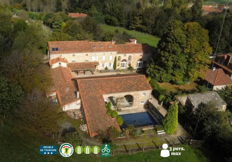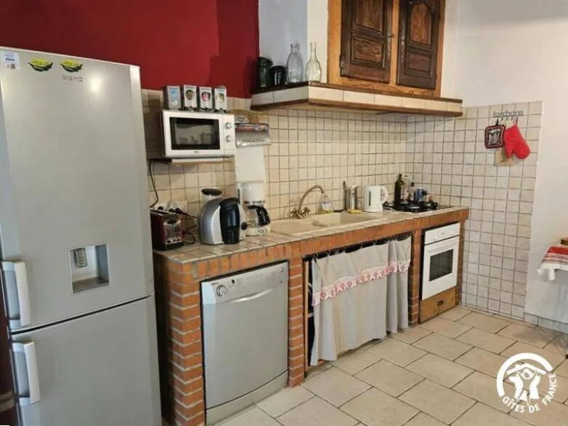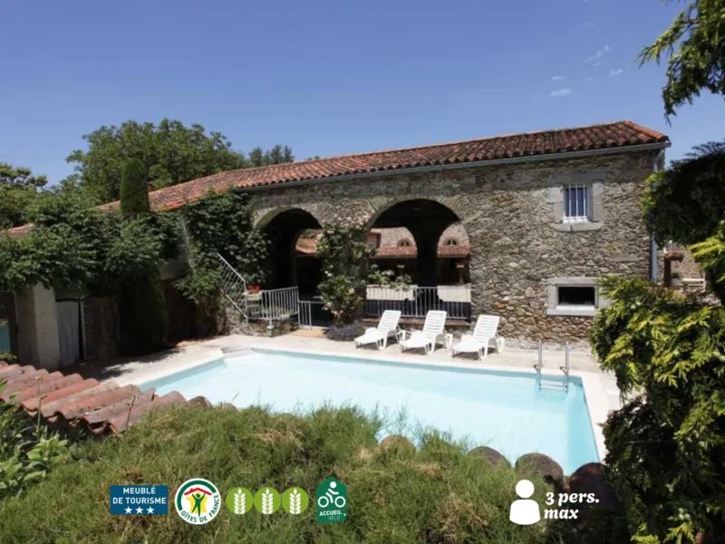 Sylvie and Serge have set up a second gîte for 4 persons, in the other wing of the farm of Rieussequel, a former traditional farm building , renovated little by little. It grants a roomy living-rm on the GR.FL, and full comfort for a discovery stay, ideally situated at the foot of the Montagne Noire (at 200 m from the green way Mazamet-Bédarieux), at 1 hour from the Languedoc beaches, from the City of Carcassonne, and at a few minutes from the Big Lakes (Lake of la Raviège, of the Montagnès…).Gîte adjoining the owner's house, in a wing of this renovated farm building. GR.FL: Roomy living-rm-cum-fully equipped kitchen. Upstairs: 2 bdrms (1 dble bd, 2 single bds), TV lounge corner on the landing, shower rm, WC. Fuel heating. Dishwash., fridge + freezer, micro-w ., electr.oven, gas 4-burners plate, washing mach. shared with another little gîte. Baby equipmt. Courtyard, car shed, garden table & chairs, BBQ, ping-pong, bikes, swimming-pool shared with another gîte + the owners. Sheets and towels supplied, cleaning service.