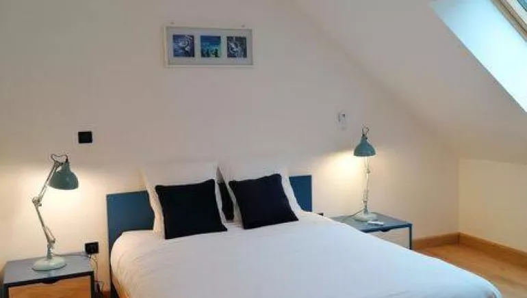 Just a few kilometres from Besançon, the 4-star l'Orée du Bois gîte welcomes you to a warm setting where music and art blend harmoniously. Let yourself be enchanted by the unique atmosphere, with a guitar, a tuba and musical notes on the staircase railings. But here's an unusual detail to discover: as you climb the stairs, these notes form an original pun... Will you be able to guess which one, listening to the harmony that emanates from this special place? You'll also love the "Les Notes Bleues" sculpture by Rémy Pointurier and a handmade coffee table by local artists Flo D'éco. For a moment of relaxation, a built-in speaker in the bathroom invites you to savour your moments of well-being to music. This 75 m² duplex apartment, designed for 1 to 4 people, offers comfort and serenity for an unforgettable stay, whether for work or to recharge your batteries.