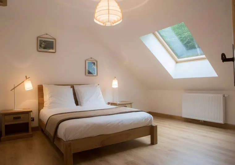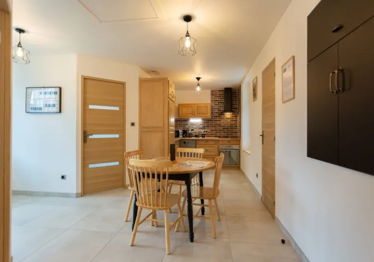 Just a few kilometres from Besançon, the 4-star l'Orée du Bois gîte welcomes you to a warm setting where music and art blend harmoniously. Let yourself be enchanted by the unique atmosphere, with a guitar, a tuba and musical notes on the staircase railings. But here's an unusual detail to discover: as you climb the stairs, these notes form an original pun... Will you be able to guess which one, listening to the harmony that emanates from this special place? You'll also love the "Les Notes Bleues" sculpture by Rémy Pointurier and a handmade coffee table by local artists Flo D'éco. For a moment of relaxation, a built-in speaker in the bathroom invites you to savour your moments of well-being to music. This 75 m² duplex apartment, designed for 1 to 4 people, offers comfort and serenity for an unforgettable stay, whether for work or to recharge your batteries.Localisation