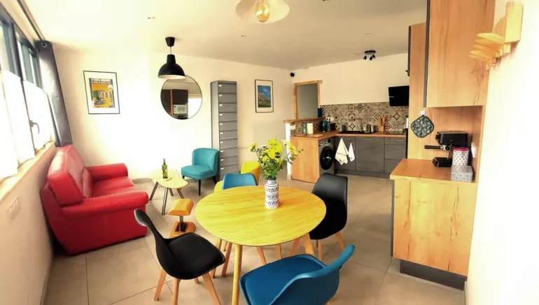 Modern, well-equipped and bright accommodation in the heart of Suisse Normande. Ideally located next to the Orne, the Vélo Francette (green route) and along the GR Tour de la Suisse Normande and the Loop du Hom. Close to the nautical base, town center and aquatic center, the accommodation comprises 2 bedrooms. One is equipped with a king-size bed that can be converted into 2 single beds, and the other with a 160x200 double bed. The communal courtyard has been designed for your relaxation. A secure bicycle garage, equipped with electrical outlets, is at your disposal.