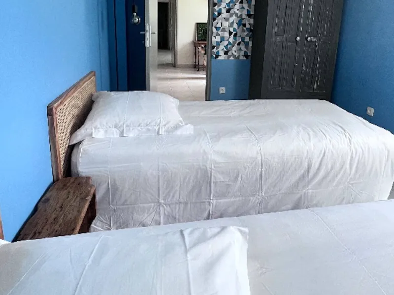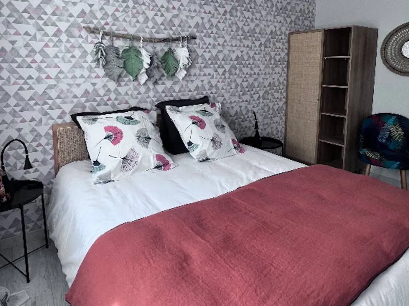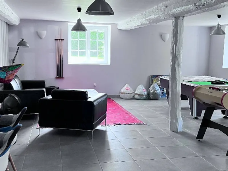 Apartment of 65 m² in an old farmhouse recently renovated in the heart of a typical village of the Basque country at 2 mn from Saint-Jean-Pied-de-Port, in a quiet area. It includes a room with a bed in 160 and a room with 2 beds in 90, a living room with a work space, a large equipped kitchen, a shower room with toilet. It has a nice view on the village and its church. You also have a private space in the garden of 4000 m² facing the mountains with a corner lounge, a dining table and a plancha. You have access to the shared areas: swimming pool, petanque, ping-pong, billiards and table soccer. Everything here is made to spend good vacations in all serenity and in full nature! Christel and Dominique will welcome you and will share their good addresses with you if you wish.Localisation