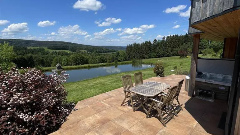 Situated high above the village, on a large plot with a pond, our ecolodge offers a 180-degree view of nature and the mountains.