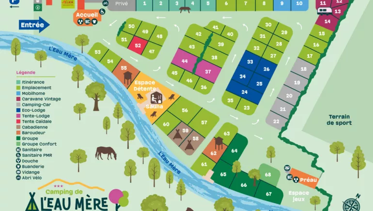 Le Domaine de l'Eau Mère, entièrement réinventé par Sophie et Vincent en 2024, propose des emplacements plats et ombragé au camping caristes!