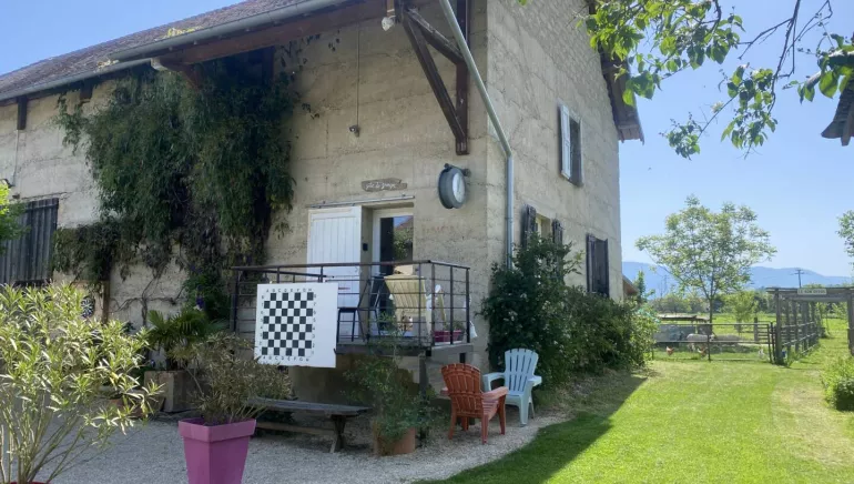 The dorm room is located in an annex with a kitchen, bathroom and balcony overlooking the garden.