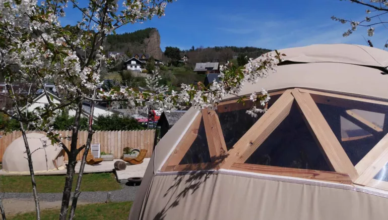 - Le Dôme cocooning : charmant dôme cocooning en toile et bois pour passer une nuit "presque à la belle étoile" en toute simplicité avec 2 couchages individuels ou lit queen size, lampe portative fournie, sanitaire dans le bâtiment adjacent et terrasse privée vue sur la falaise de la dent du Marais.