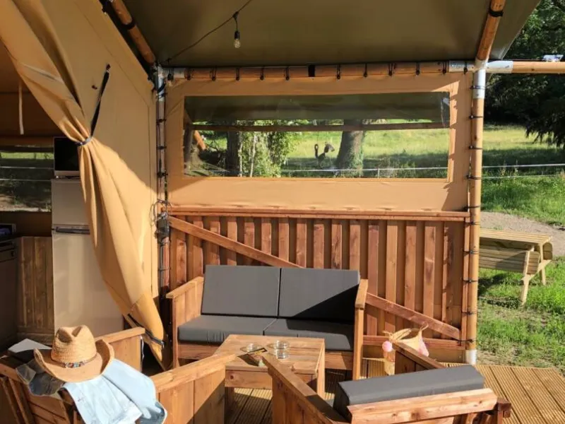 Five lodges for 6 people with fully equipped kitchen, shower room, toilet, master bedroom, cabin room and bunk beds, dining area, terrace, BBQ, hammock... happiness! Four cottages designed and built for you. One for 4/6 people with 2 bedrooms and a sofa bed and the other for 5 people with a large bedroom and a mezzanine. Your comfort is assured with its fully equipped kitchen, its dining area, its living room, its shower room. Everything is on the same level with access and circulation designed for people with reduced mobility in our last cottage. You can enjoy the whole estate with its 8 hectares with century-old trees, its tennis court, its table football, its ping pong, its playground, its petanque field, its swimming pool, its spring water pool, horses, donkeys, geese, goats, hens, an above-ground swimming pool...and even circus classes under a big top!See you soon for an enchanted stay under our Bonne Etoile.
