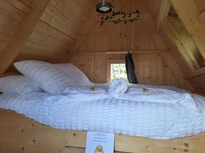 Do you dream of sleeping in a troll cabin? Sophie has done it for you and offers you the chance to spend a night in one of her cabins! This unusual experience for two will take you right to the heart of nature and the Brocéliande region. Don't wait any longer and come and discover your own cocoon!- The cabin has a 140×200 double bed with a clever sliding table and stool system so you can have breakfast inside.