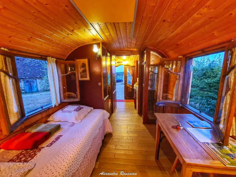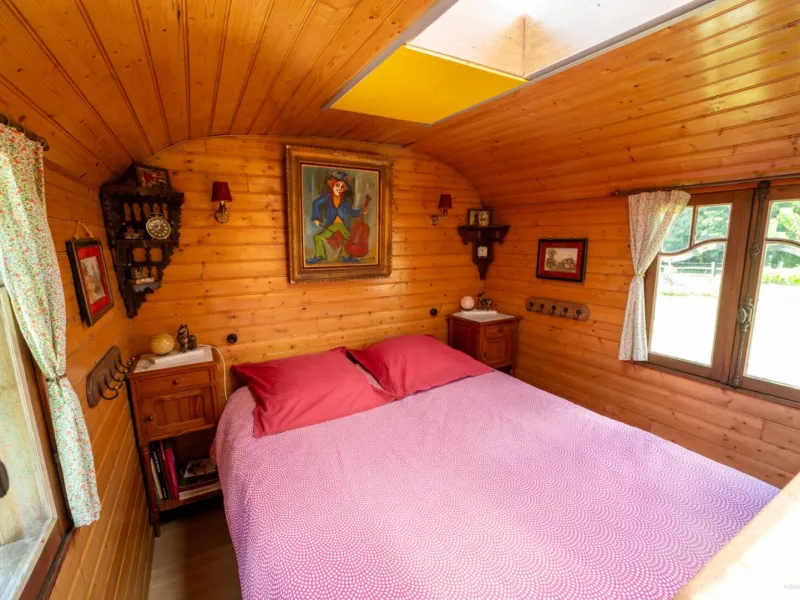 As neighbours you will have farmyard animals, a donkey and Percheron horses, adding interest to your stay, as well as a gite for 6 people built in the old manor bakery. With a surface area of 18 m², this caravan has everything you would find in larger accommodation since it includes a kitchenette with own washing machine, bathroom, WC, room with double bed and sofa/bed, with additional fold-out bed. Shared swimming pool available at specific times, compliance with internal regulations required. Option to rent a gite for 6 people on the property.Localisation