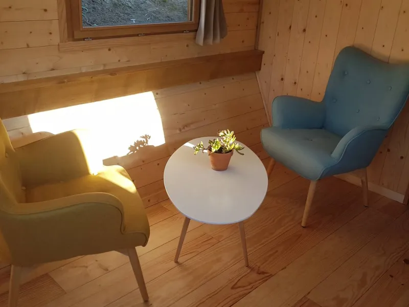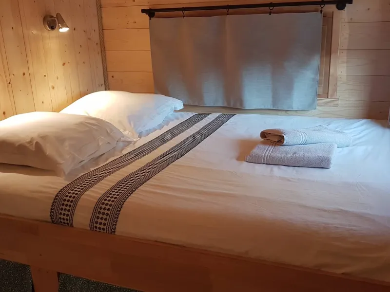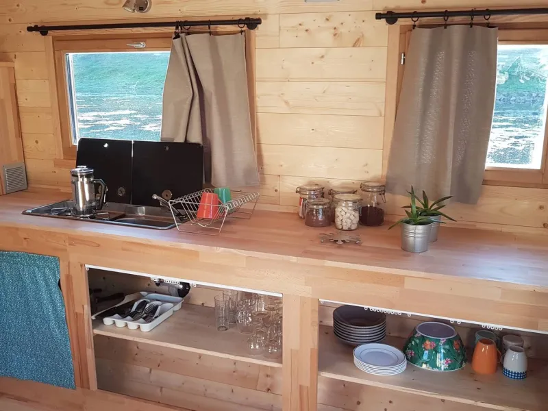 The toue has a double bed and two armchairs that can be converted into a single bed. A kitchen, bathroom and dry toilet complete the facilities for a perfect stay.