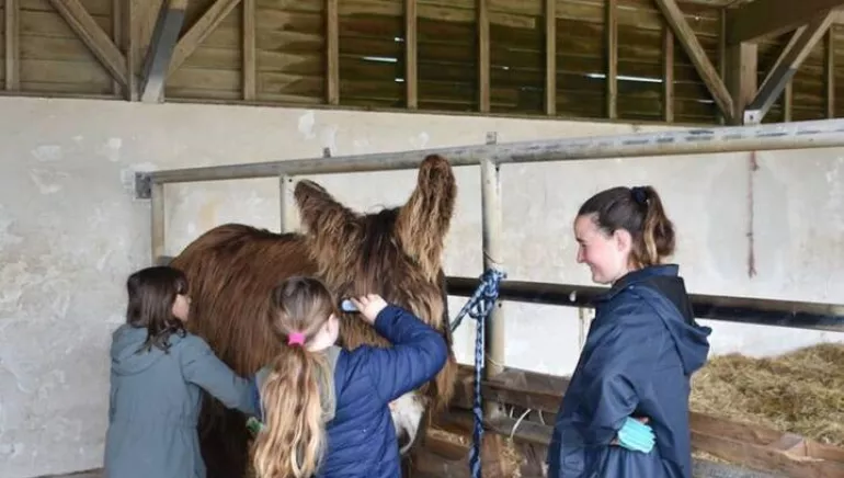 Un moment ultra privilégié encadré par des animateurs passionnés et en petits groupes (maximum 10 personnes), où l'accent est mis sur l'âne et ses soins (pansage = brossage, nourrissage, manipulation,....) mais aussi sur la complicité, la coopération entre les petits et les grands participant à cette activité.