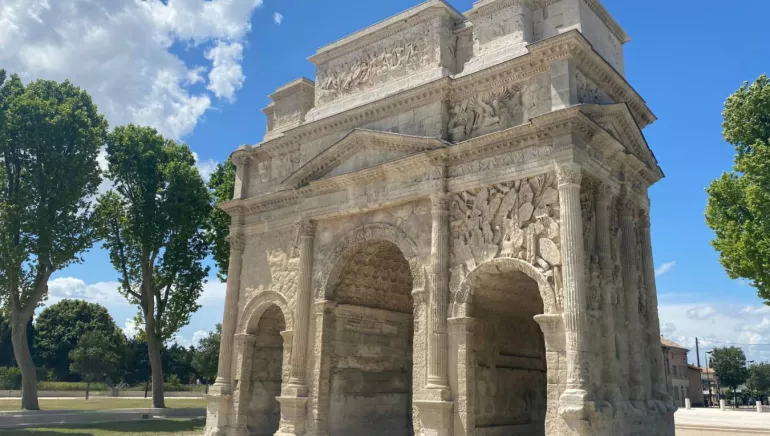Visit to the village of Piolenc, with the legendary Nationale 7 road running through it. The colourful vineyards alternate with olive and oak trees, with Mont Ventoux and the Dentelles de Montmirail in the background. Visit to the village of Sérignan-du-Comtat, with fine Provençal houses made from golden stone from quarries used to build the Roman Theatre.