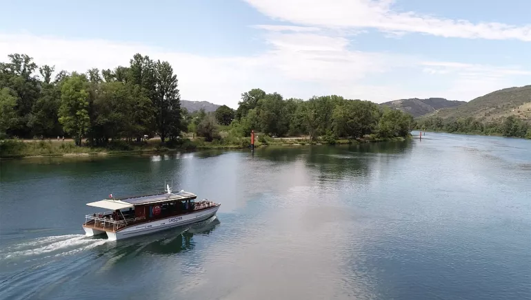 The new eco-responsible "Canotier" catamaran takes you on a cruise along the majestic river, through the land of the Hermitage and Saint-Joseph vineyards.