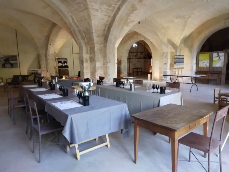 L'élégante salle voutée est équipée d'un vidéo projecteur et d'un écran pour les réunions pouvant regrouper jusqu'à 150 personnes. Spacieuse et avec connexion internat, elle est propice à la concentration de l'auditoire.Un moment d'évasion dans le vignoble, suivi d'une dégustation des vins fédèrera vos équipes.