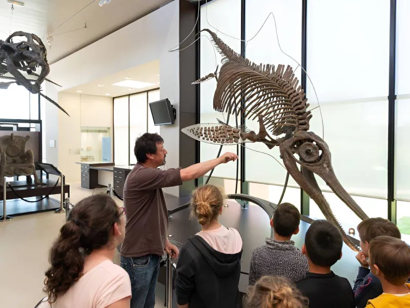Delve into the Jurassic Period! Some 160 million years ago, dinosaurs occupied the Earth, and the seas that covered Normandy were home to ferocious marine reptiles…Discover the skeletons of these fearsome predators (Anna the ichthyosaurus: 5.4m in length, a liopleurodon: 10m) together with a great variety of fauna and flora: the Black Cow Cliffs abound with fossils that bear witness to its bygone underwater past.