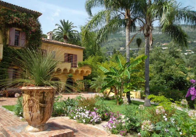 A few kilometres from the coast, in the Madone district, on the road to Gorbio, in a very hilly area and on the slope of a real ridge - a greenhouse - Lawrence Johnston, American, British citizen and French at heart, chose to make his home and create a garden where he could install the rarest plants that he would bring back from the end of the world.A cypress-lined road leads to the property. Along this access ramp, one discovers magnificent species that make the originality and quality of this garden: the Himalayan tropical oak, whose leaf has nothing to do with an oak leaf, the two immense Podocarpus trees with their fine sickle-shaped leaves and thick shade, the two Washingtonia filifera trees, the large Magnolia delavayi from Yunnan and finally the exceptional Nolina from Mexico. Entering this timeless place, cut off from the hustle and bustle of the city, the fragrances that emanate from the garden, the birdsong, the majesty of the large plants, awaken our senses.