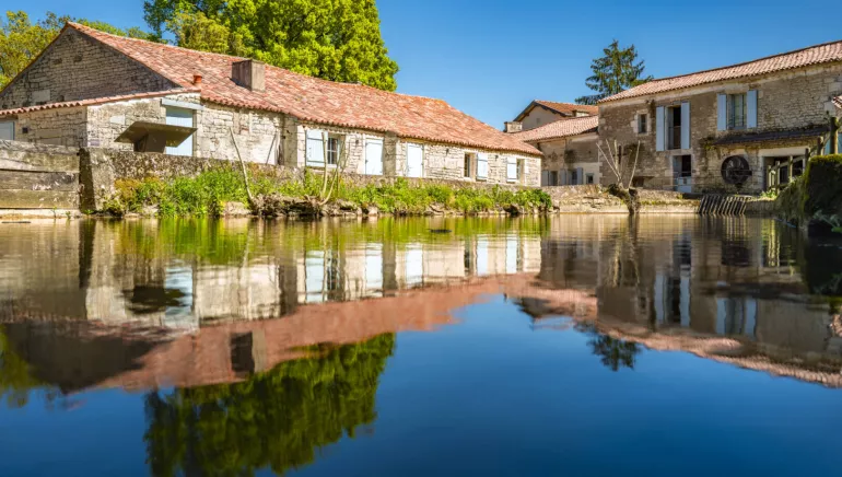 Enter the Nieul water mill, built in 1728. Still in operation, it crushes wheat and buckwheat for the Puyletard mill on the other side of the river Autise.
