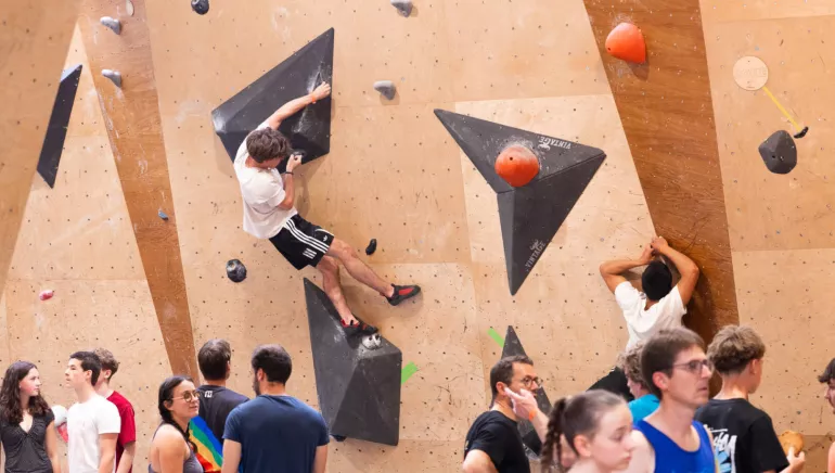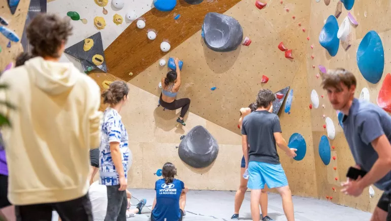 The climbing gym team will guide you in discovering and perfecting the most urban of outdoor activities! On an indoor structure meeting all safety standards, climbers move freely over thick landing mats. Bouldering is the hottest new discipline in the world, and its exponential popularity is due to its fun and friendly nature. Bouldering is for everyone, from beginners to advanced climbers (from the age of 2).
