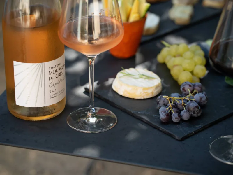 Aux accents provençaux, ce pique-nique composé de tapenade, brandade de Nîmes, légumes, terrine aux olives, fromage de chèvre, huile d'olive, fruits du domaine... est à déguster sous la tonnelle dans la cour ou dans les vignes. Il est précédé d'une visite du vignoble et de la cave puis d'une dégustation des vins. Prestation payante sur réservation.