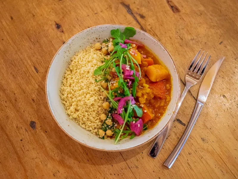 Here you will not find a freezer, we are eco-responsible. We collect the products on your plate in the morning at the market with our two-wheeler. Our kitchen offers a balanced and different menu every day to awaken your taste buds.Whether on the terrace, in the dining room, or on a sofa; a lunch with colleagues, a dinner with friends, or a snack with the family at the weekend; each time of life has its own atmosphere and dishes. It is with the pleasure of welcoming you as guests at home that we have imagined this restaurant as a convivial table. And so it is with simplicity and kindness that you are invited to sit at our table.