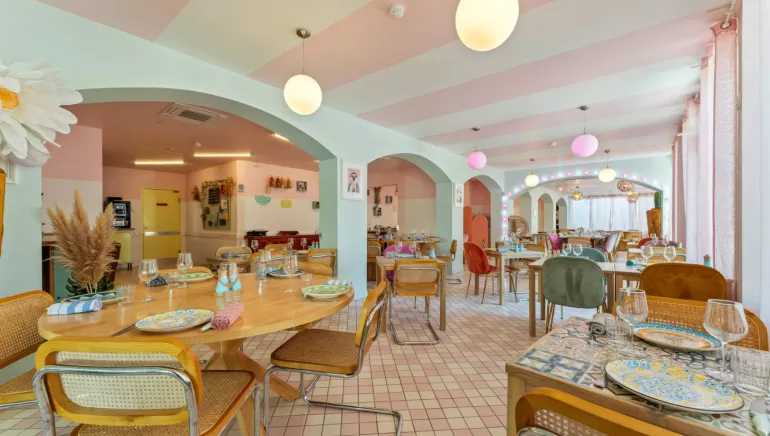 Immerse yourself in the atmosphere of the 70s, thanks to our funky decor and vibrant colors.